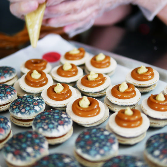 Indulge in our delectable macarons, available in a wide range of flavours.
